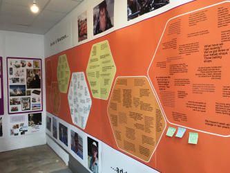 The exhibition tells the story of Newtown’s development and its global connections, from the pioneering mail-order business of Pryse Jones to the global business of textile firm Laura Ashley in the 1980s, to interesting business and cultural connections today. Panels describe some of the engagement in global networks that form part of everyday life in the town, including findings from a door-to-door survey of residents, and there’s a wall giving voice to the thoughts and recollections of Newtown people. Visitors are challenged to think about Newtown’s future, and to decide which icons of globalisation they would boost or bin.