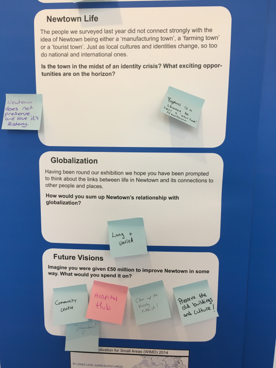 28 September 2017 BlogsEventNews: Land and Capital, Land Investment and Land Grabbing, Australia, GlobalOver the last week, members of the public in mid Wales have had the chance to find out more about some of the GLOBAL-RURAL research at a pop-up exhibition reporting back on the in-depth fieldwork on ‘everyday globalization’ that we’ve been carrying out in the market town of Newtown for the past two years.
